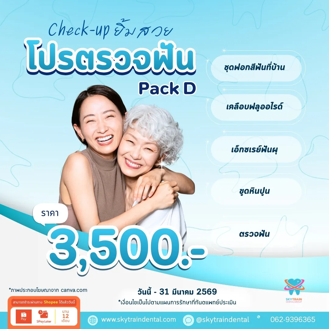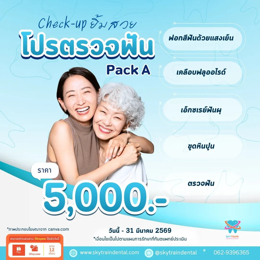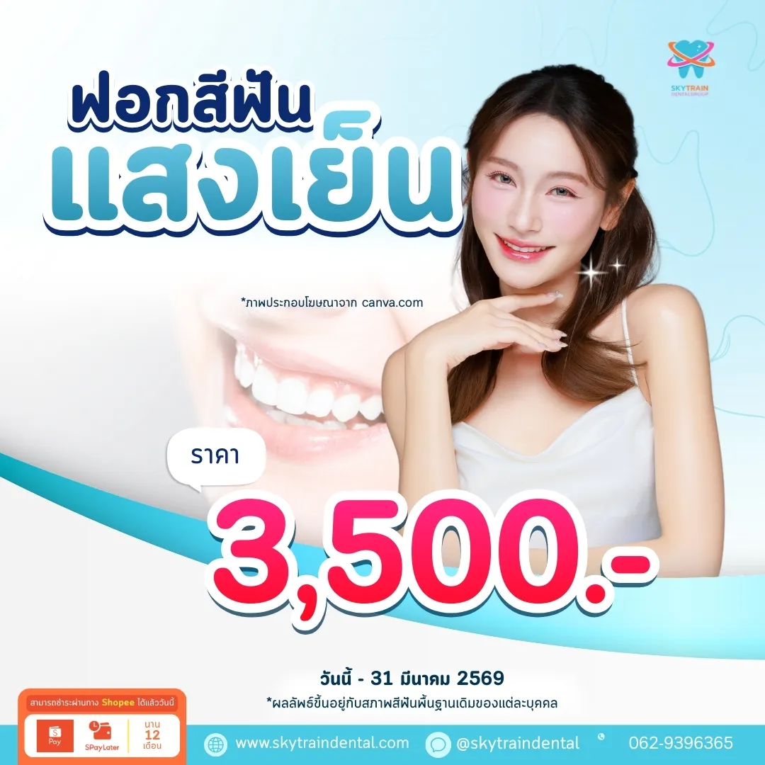 แต่ละบริการมีระยะเวลาที่แตกต่างกันและอาจมีการเปลี่ยนแปลงตามความเหมาะสม เพื่อข้อมูลที่ถูกต้องล่าสุด โปรดสอบถามเจ้าหน้าที่ของเราได้ที่ Line OA: @skytraindental