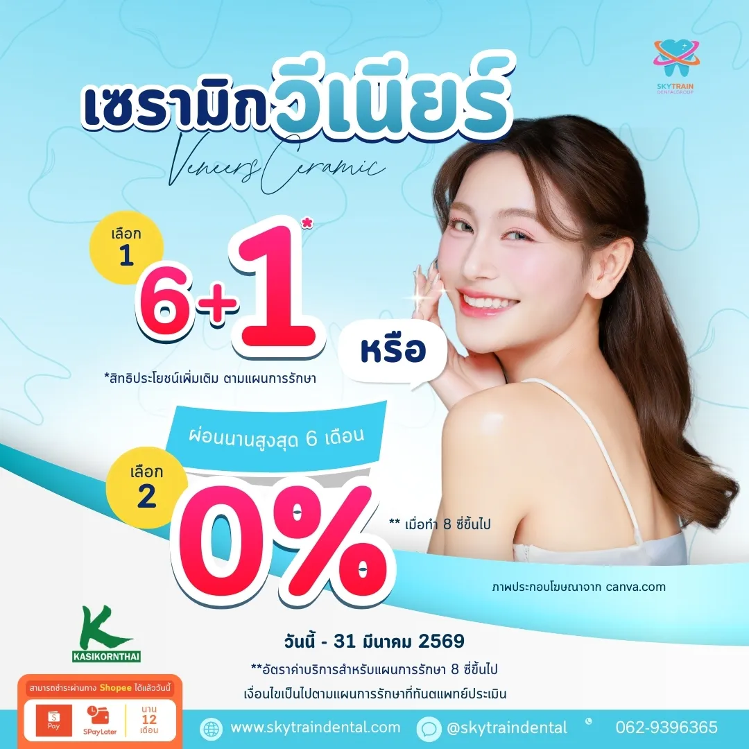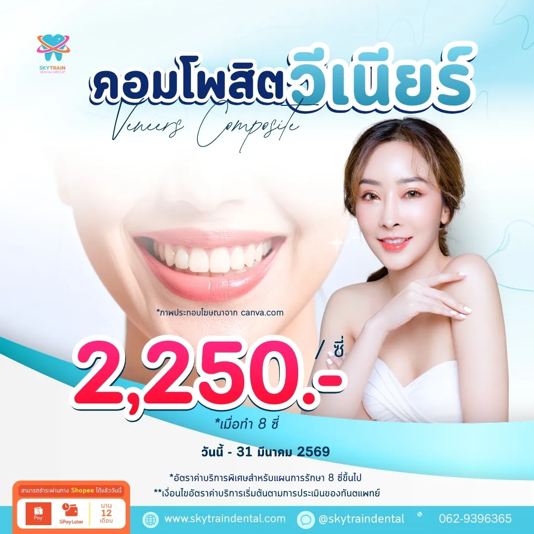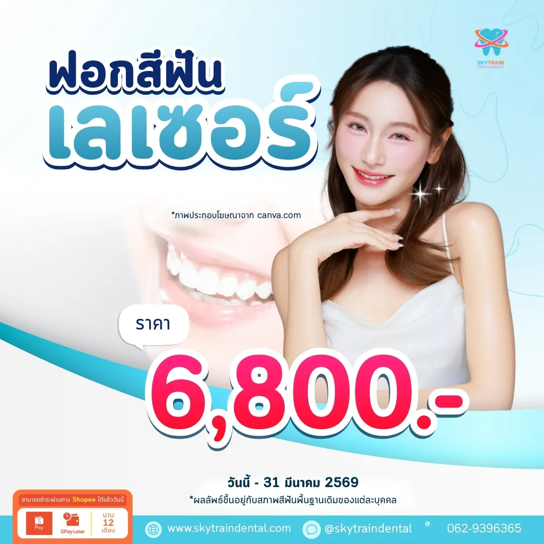 แต่ละบริการมีระยะเวลาที่แตกต่างกันและอาจมีการเปลี่ยนแปลงตามความเหมาะสม เพื่อข้อมูลที่ถูกต้องล่าสุด โปรดสอบถามเจ้าหน้าที่ของเราได้ที่ Line OA: @skytraindental