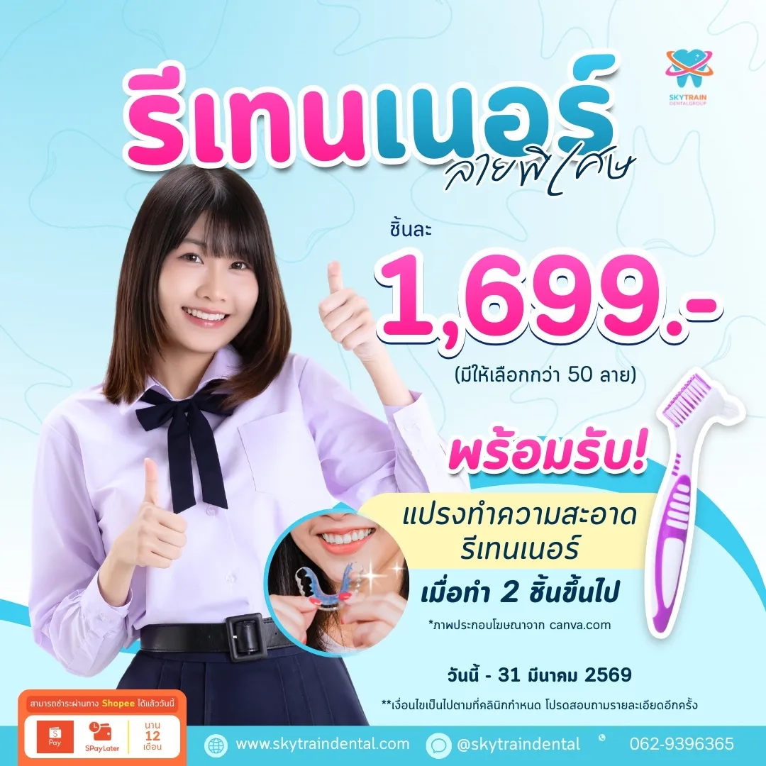 ราคาที่แจ้งครอบคลุมค่าบริการตามรายการที่ระบุ อย่างไรก็ตาม ในบางกรณีอาจมีค่าบริการเพิ่มเติมจากการรักษาต่อเนื่องเพื่อให้ได้ผลลัพธ์ที่ดี เช่น การเคลียร์ช่องปากก่อนเริ่มจัดฟัน ทั้งนี้ทันตแพทย์จะแจ้งให้ทราบก่อนเริ่มการรักษา Line OA: @skytraindental