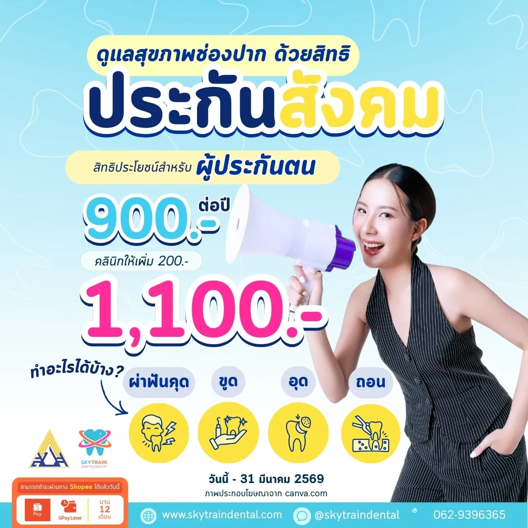 - ประกันสังคม: ใช้สิทธิ์ทำฟันโดยไม่ต้องสำรองจ่ายตามวงเงินที่ประกันสังคมกำหนด (สูงสุด 900-1,100 บาท ตามเงื่อนไขของสถานพยาบาล)